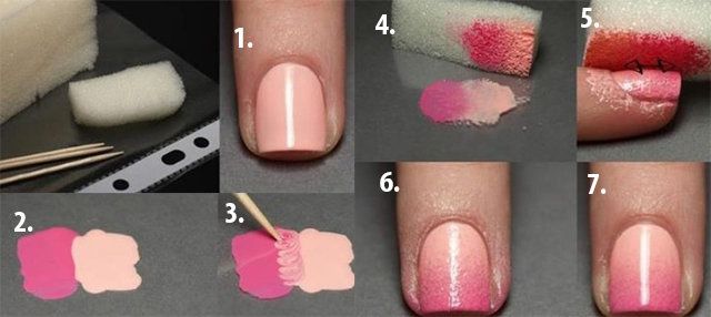 A vízszinten ombre köröm napjaink kedvelt trendjévé vált a nők körében. Ennek lényege hogy felviszünk egy alapszínt majd pedig egy szivacs segítségével a tetejére nyomkodunk egy másik színt de csak a köröm felére.